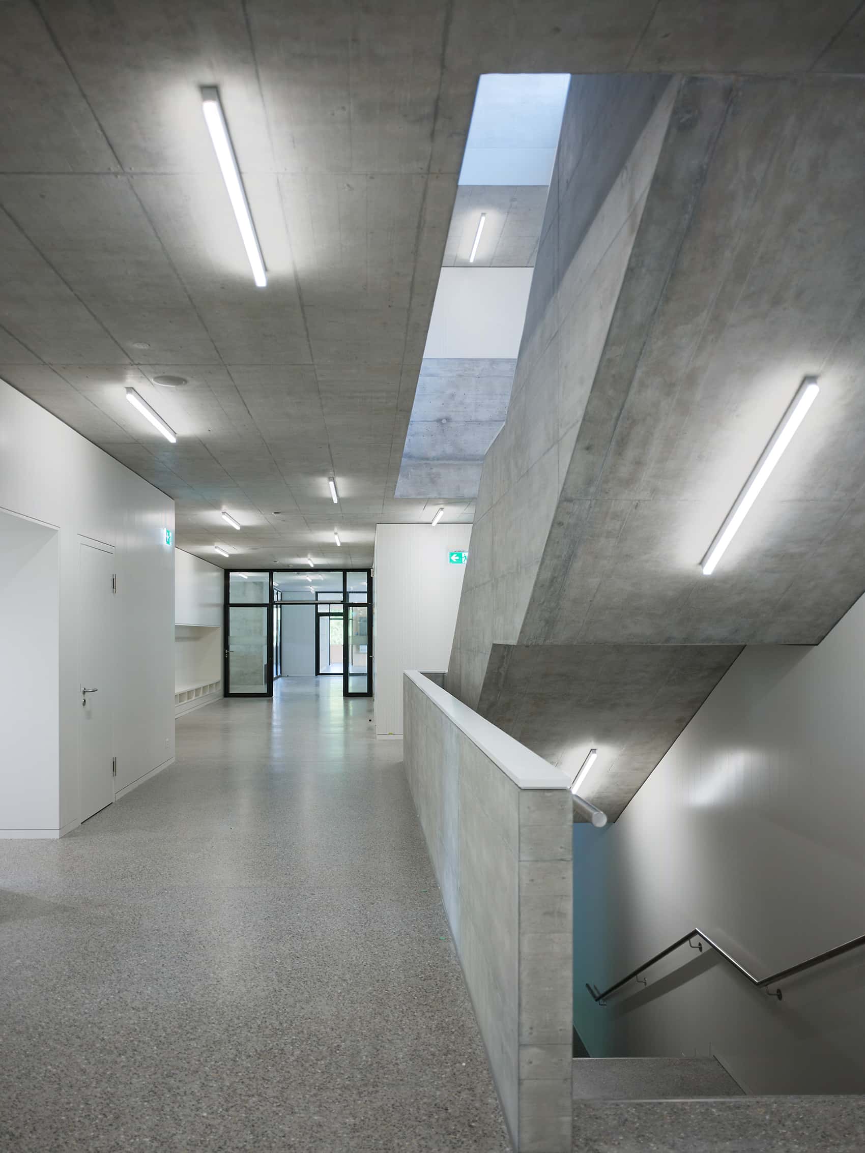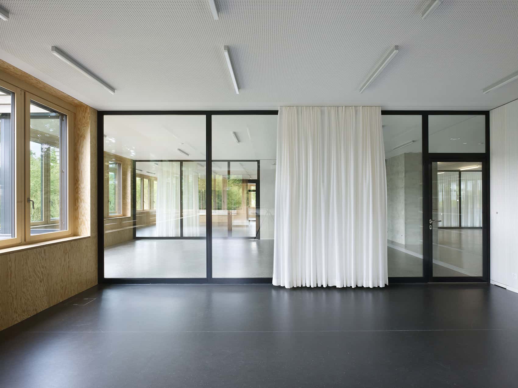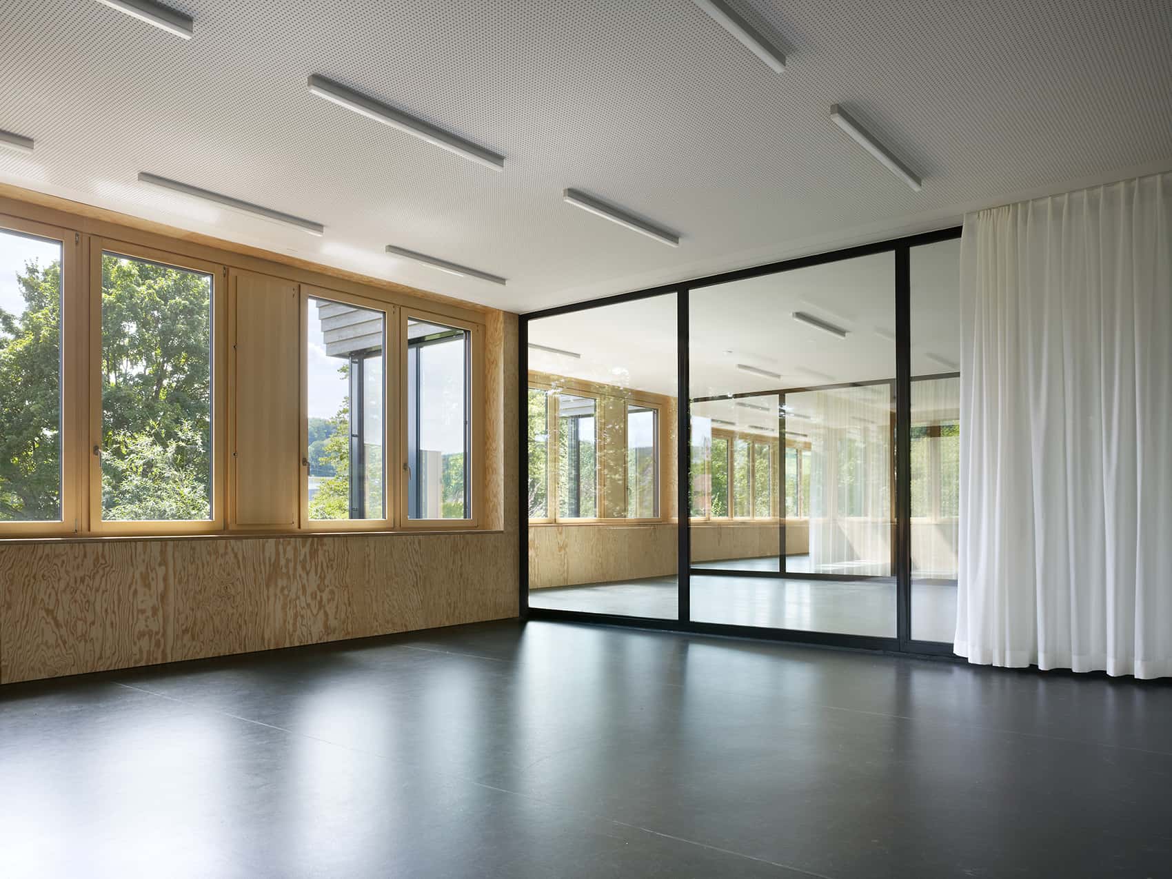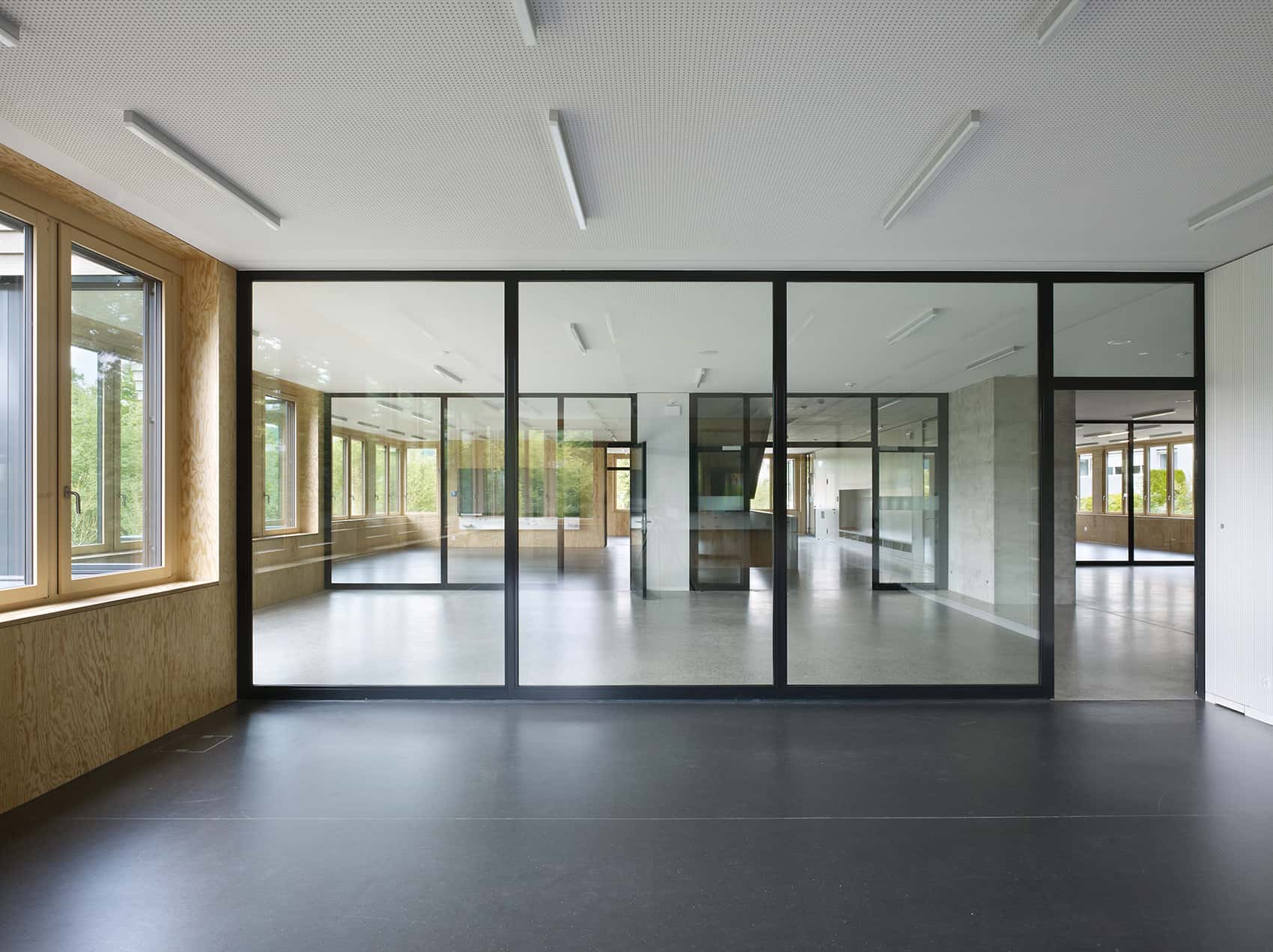 The pedagogical guidelines of the primary school in Birmensdorf inspired an innovative architectural interpretation. A flowing sequence of spaces fosters interaction between classrooms and creates openness, flexibility, and versatility in everyday learning. Visually and physically connected, the rooms form a continuous learning landscape.